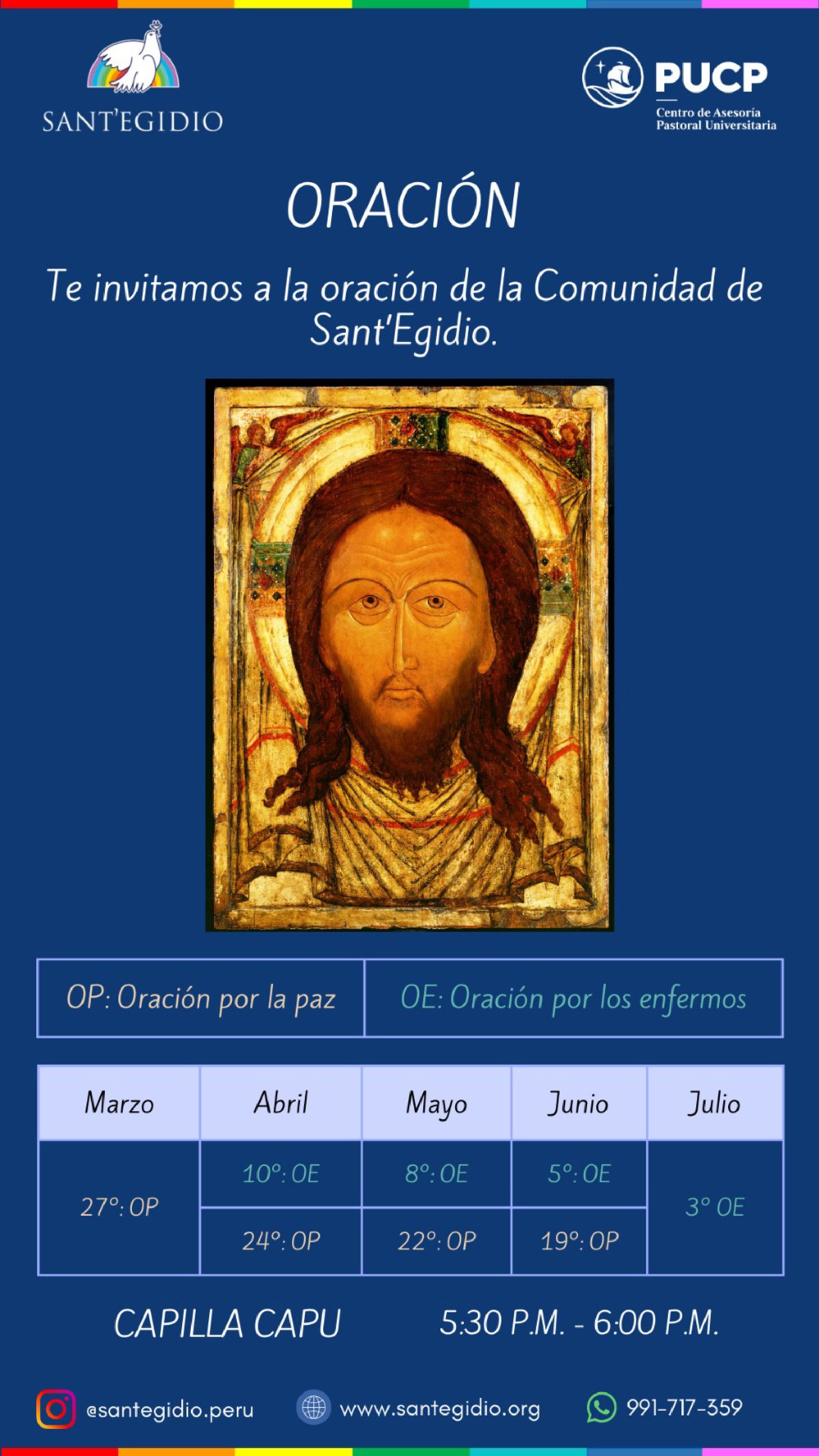 Invitamos a toda la comunidad universitaria a orar con la comunidad de Sant'Egidio en la PUCP.